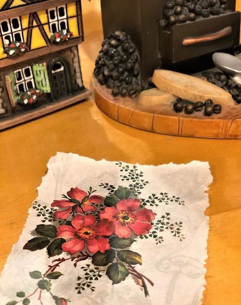 3.Sometimes instead of cutting with scissors, you might want to wet the image edges using a water-dipped paint brush and then pull the image out using fingers – this helps create a shabby chic look. I absolutely love employing this technique for postage stamp and vintage images in general!