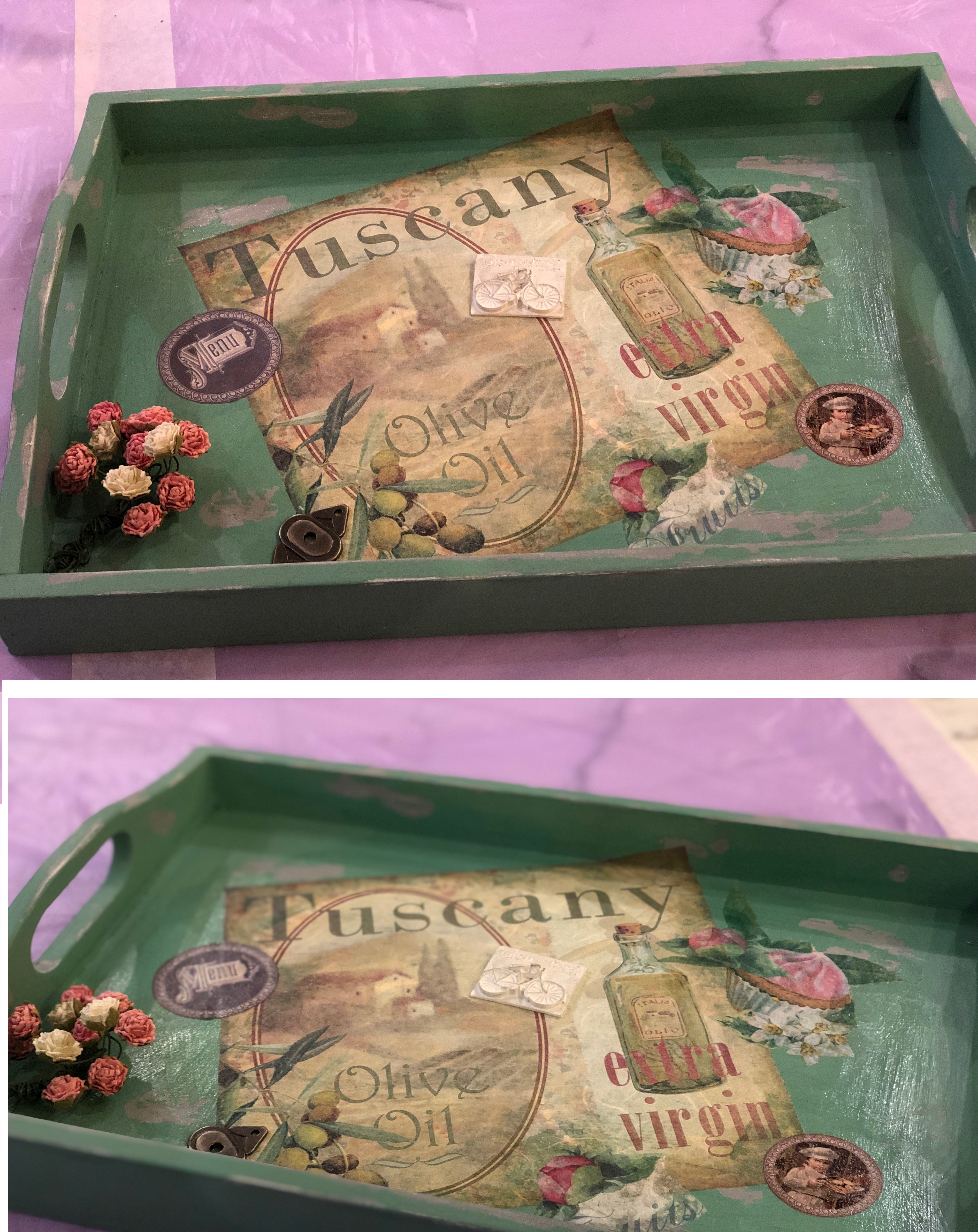 2.Decoupage papers come in different thicknesses. It is better not to apply too many coats of modge podge and varnish over the extremely thin ones (and additionally which have faded version of images), especially when the base colour is very similar (or different from white) as that could cause the image to disappear and become less visible or occasionally acquire that unpleasant ‘soaked’ look.